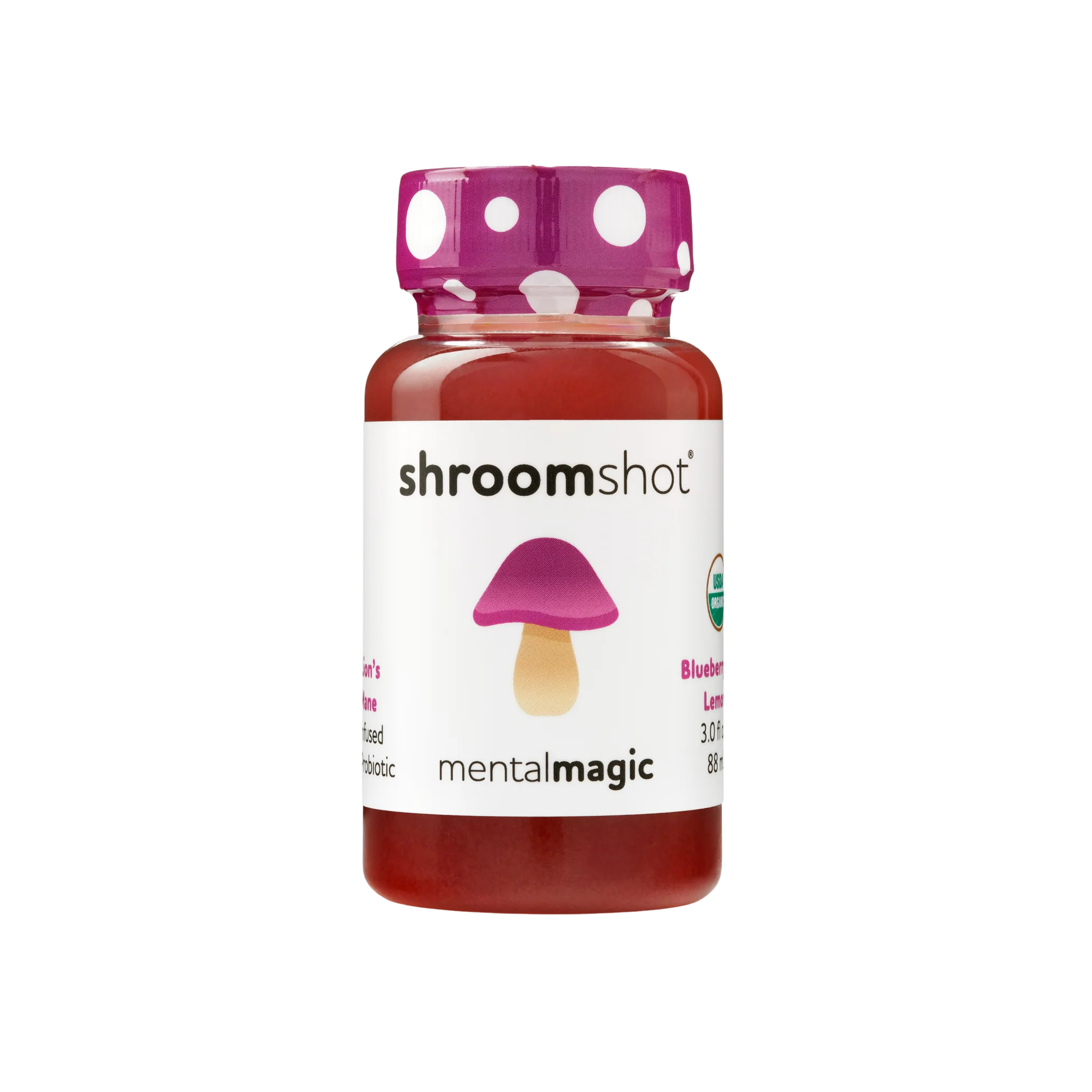Focus: Introducing Mental Magic- an all-natural wellness shot with a delicious blueberry-lemon flavor, designed to support focus, clarity, and brain health. At the heart of this blend is Lion’s Mane mushroom, a powerhouse superfood renowned for its cognitive benefits. We’ve paired it with ashwagandha to help manage stress and living probiotics to nurture a healthy gut-brain connection. Stay sharp, energized, and productive throughout your day while enjoying the vibrant taste of 100% organic blueberry lemon—brain-boosting benefits. Features: - 3oz ready-to-drink bottles - Case of 12 shots - 120-day shelf life - Made w/ certified Organic ingredients - Includes eye-catching shelf card with opening orders + table top display upon request - Contains Lion's Mane mushroom and ashwagandha - Living probiotics for gut health